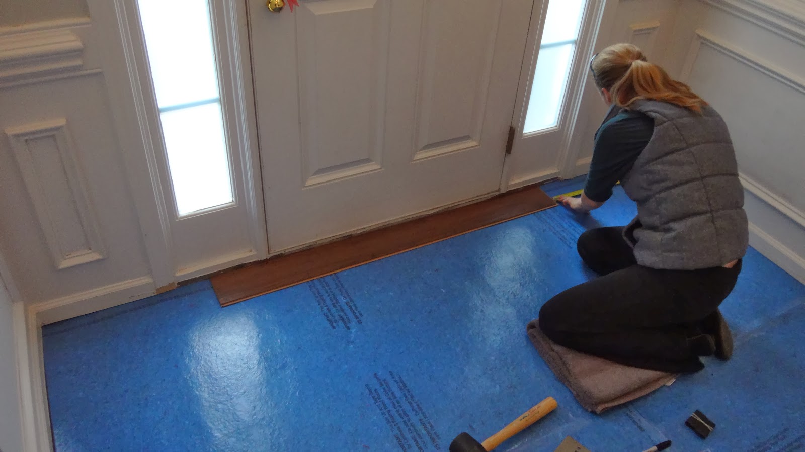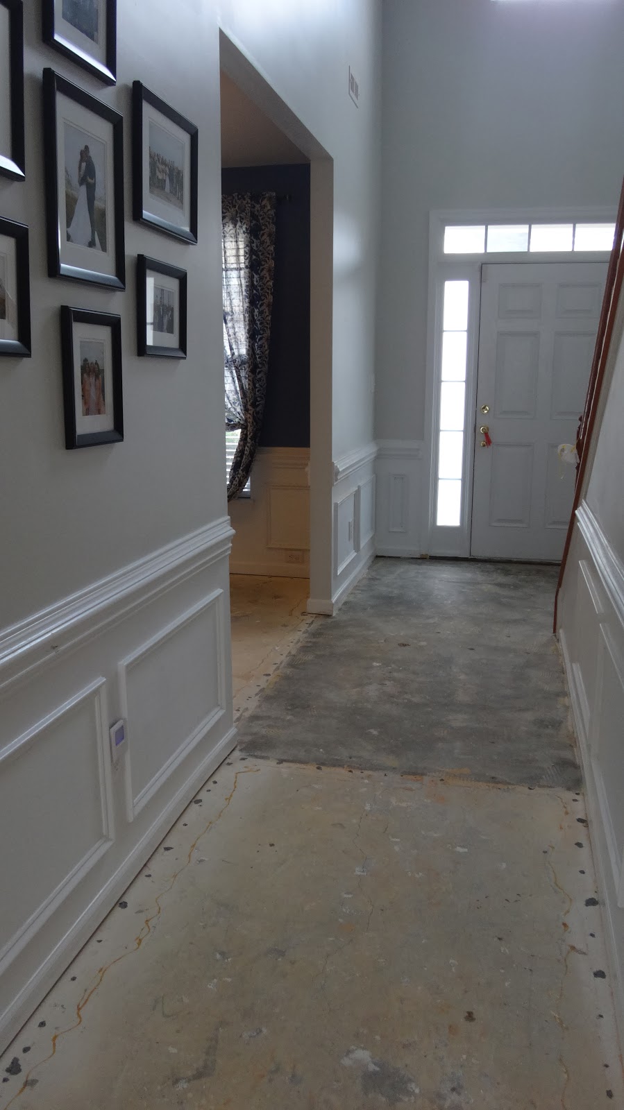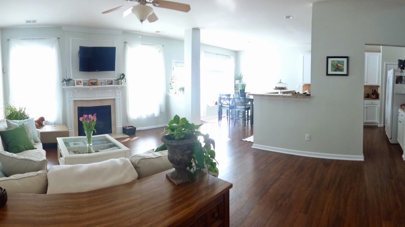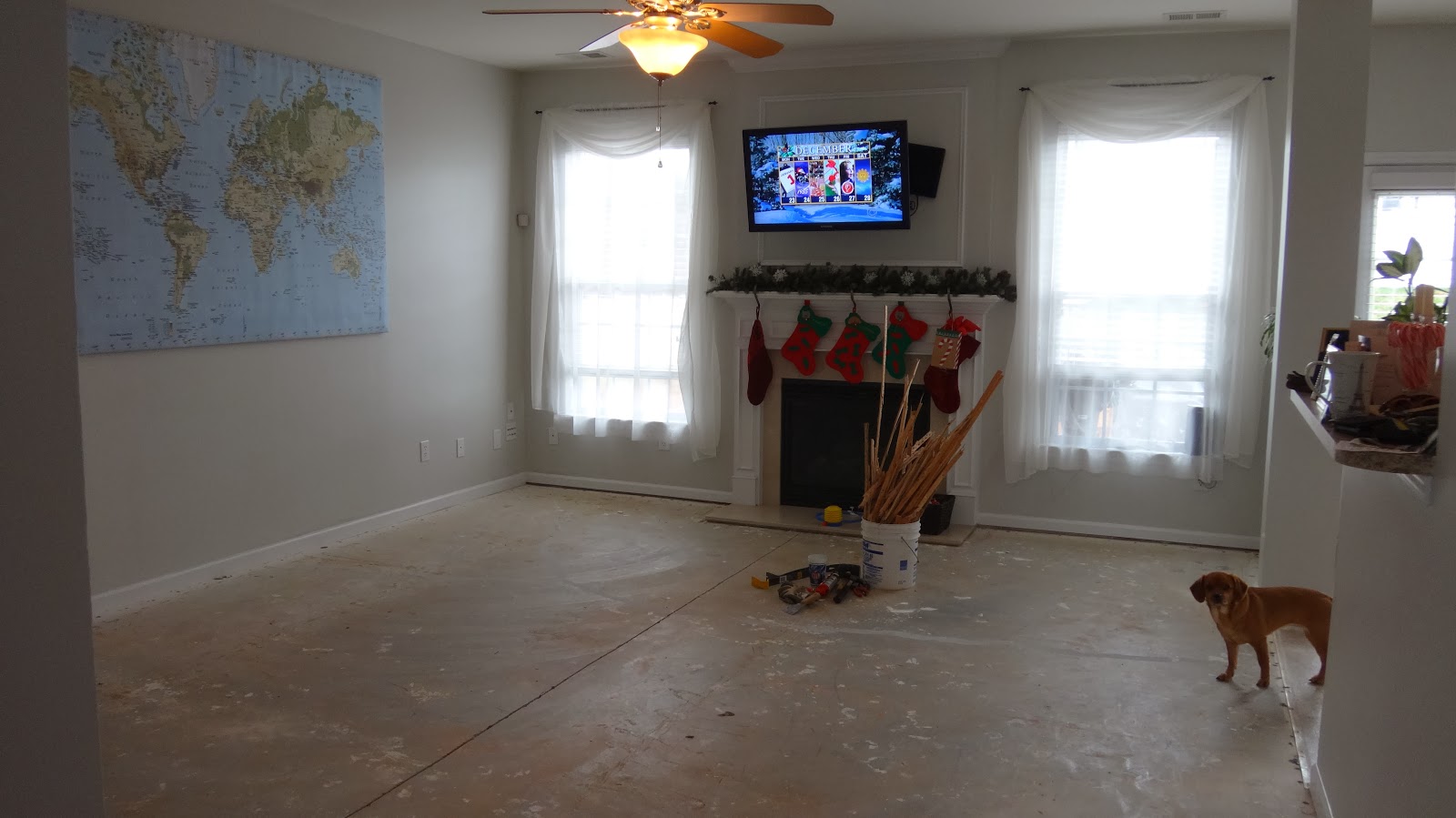We spent our sunny hours getting some more of the quarter round in and finally getting around to organizing the house and taking our "After" photos of the floor in the living room and kitchen.