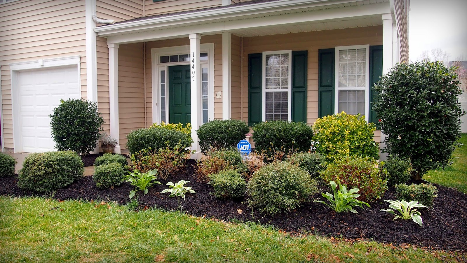 We did get about 1.5 cubic yards of mulch last weekend, but instead of along our fence, it was utilized in two other much needed areas: the front garden bed and around our trees. Now these spaces look fresh and neat. We get so much shade in this North facing garden, that I couldn't help but get some beautiful Hostas to brighten up the area. I don't really know why, but I LOVE Hostas. I think they remind me of New York and New England landscaping. Maybe it is a way to bring a bit of that to my new home here in the South. The "Patriot" variety is a real favorite with the lovely contrasting white edges and vivid green leaves.