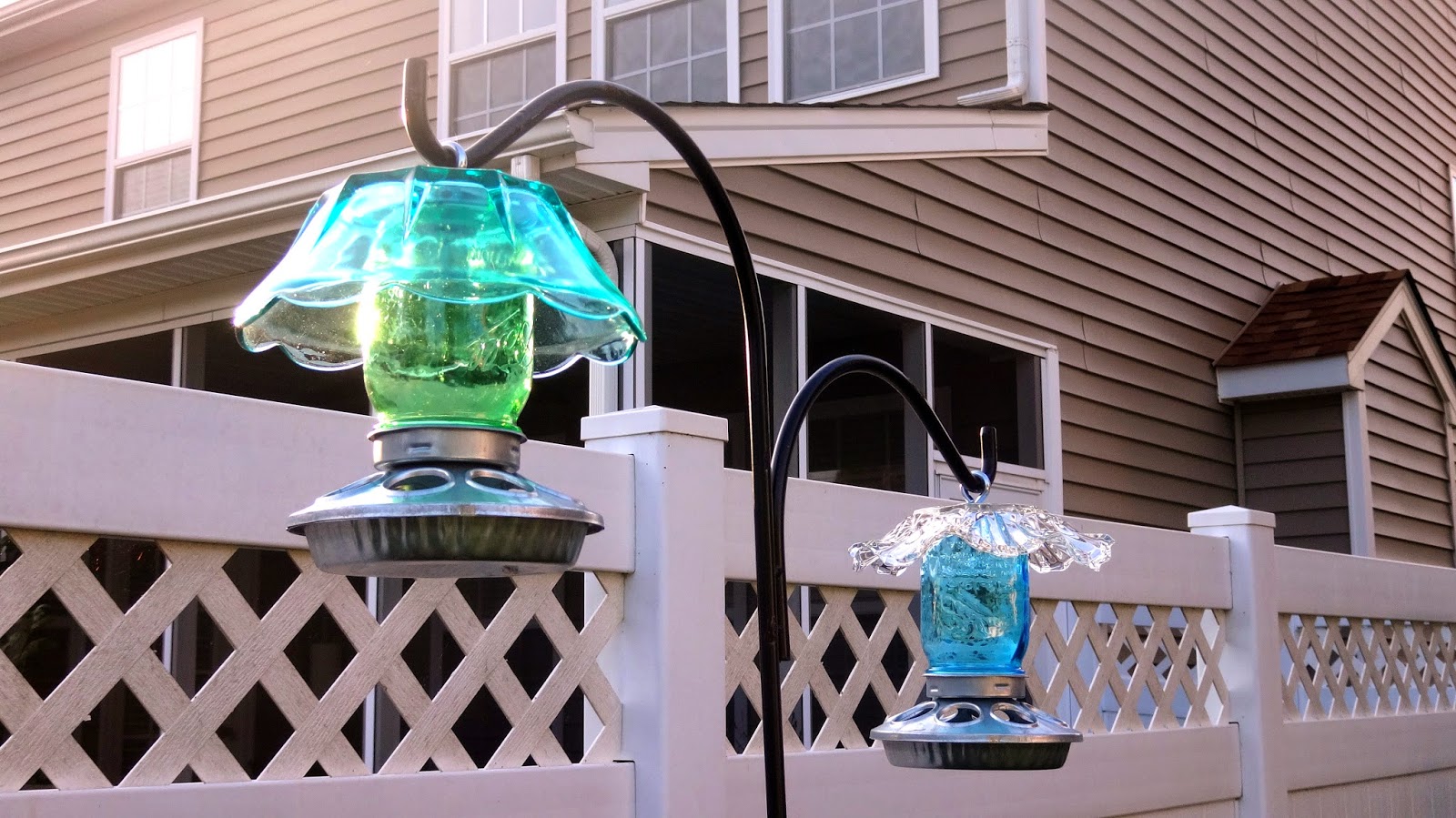 Another nice addition to our back garden are these lovely glass bird feeders.