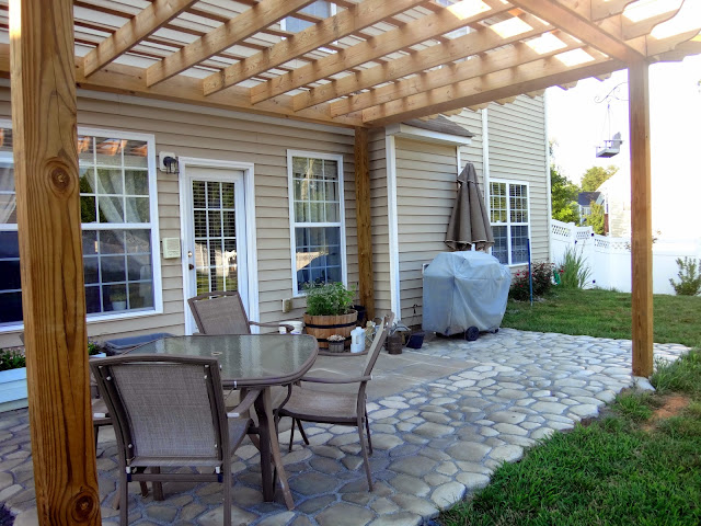Here is the [nearly] finished pergola and patio!